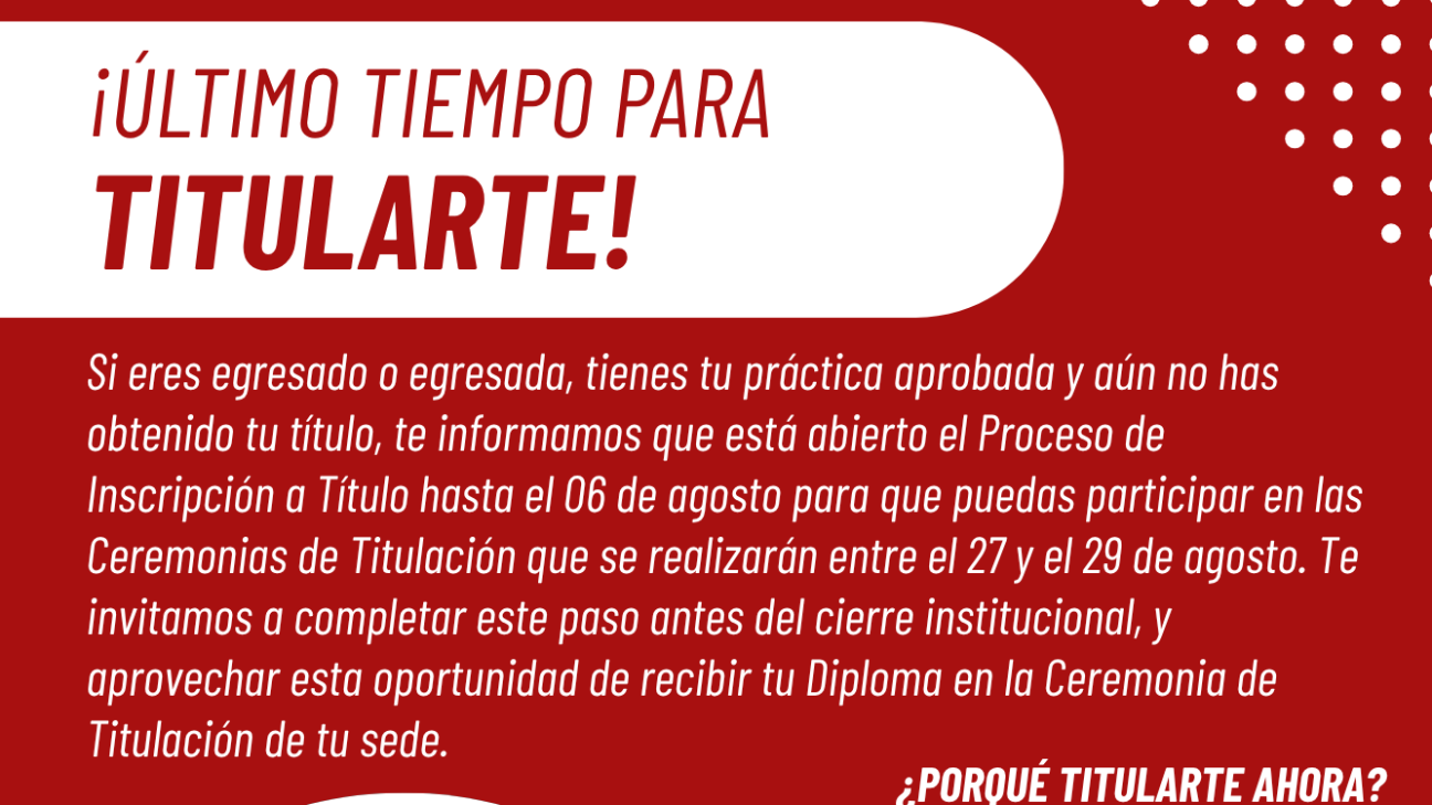Esta es tu oportunidad para completar tu proceso antes del 6 de agosto y participar en las ceremonias de titulación que se realizarán entre